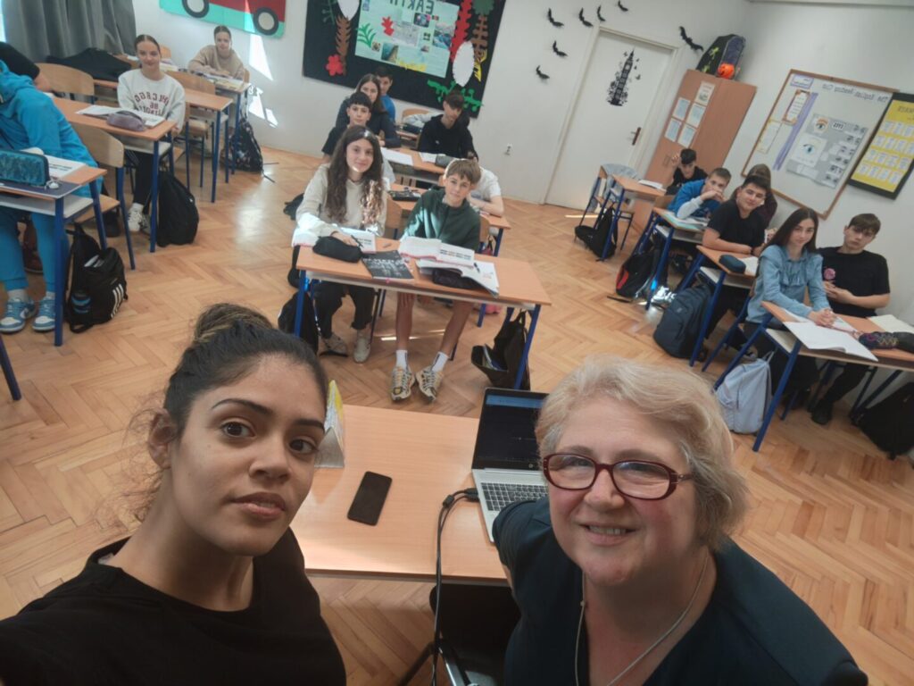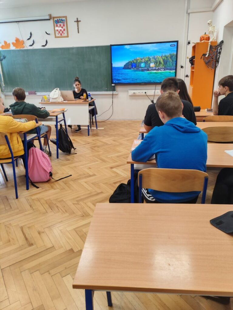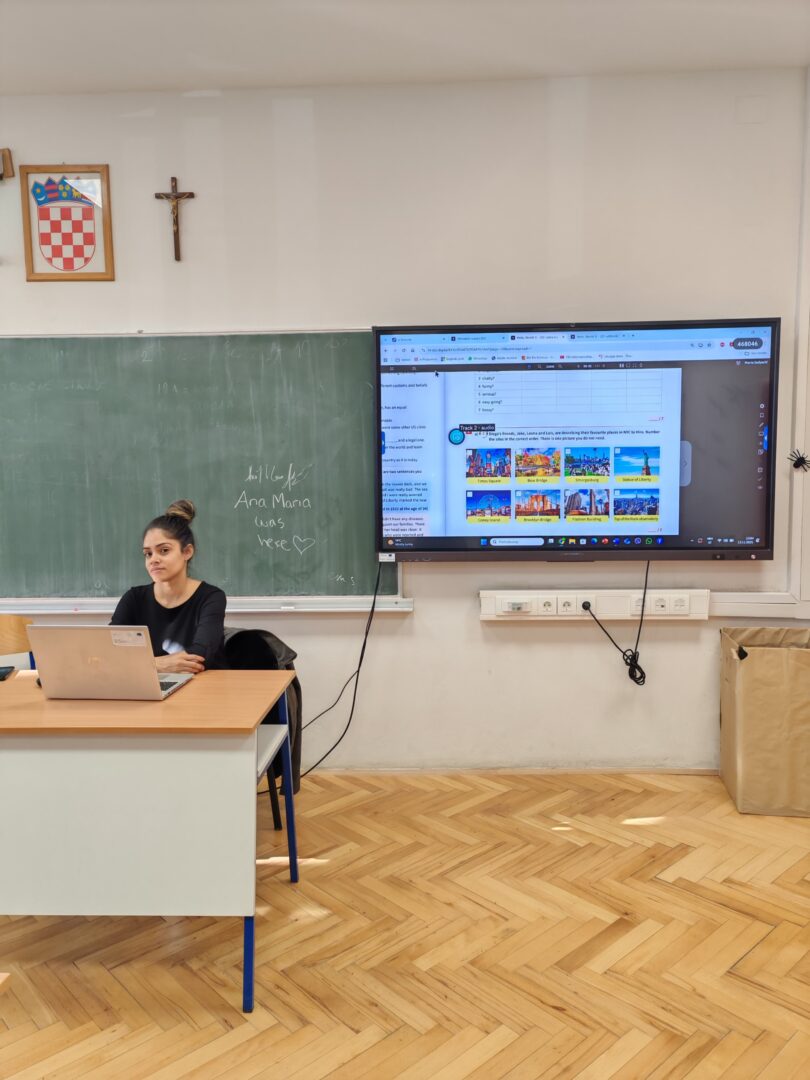 U četvrtak, 13. studenog 2025. na satu Engleskog jezika u okviru cjeline o Americi i New York Cityju imali smo gošću porijeklom iz NYC-a koju su učenici 8.b mogli pitati o gradu, kulturi, znamenitostima i životu u Americi. Ana Marija Muljević živi u Požegi već 11 godina, a doselila je iz New Jerseyja, država New York. Rado je odgovarala učenicima na pitanja u vezi teme te im postavljala pitanja na engleskom jeziku.