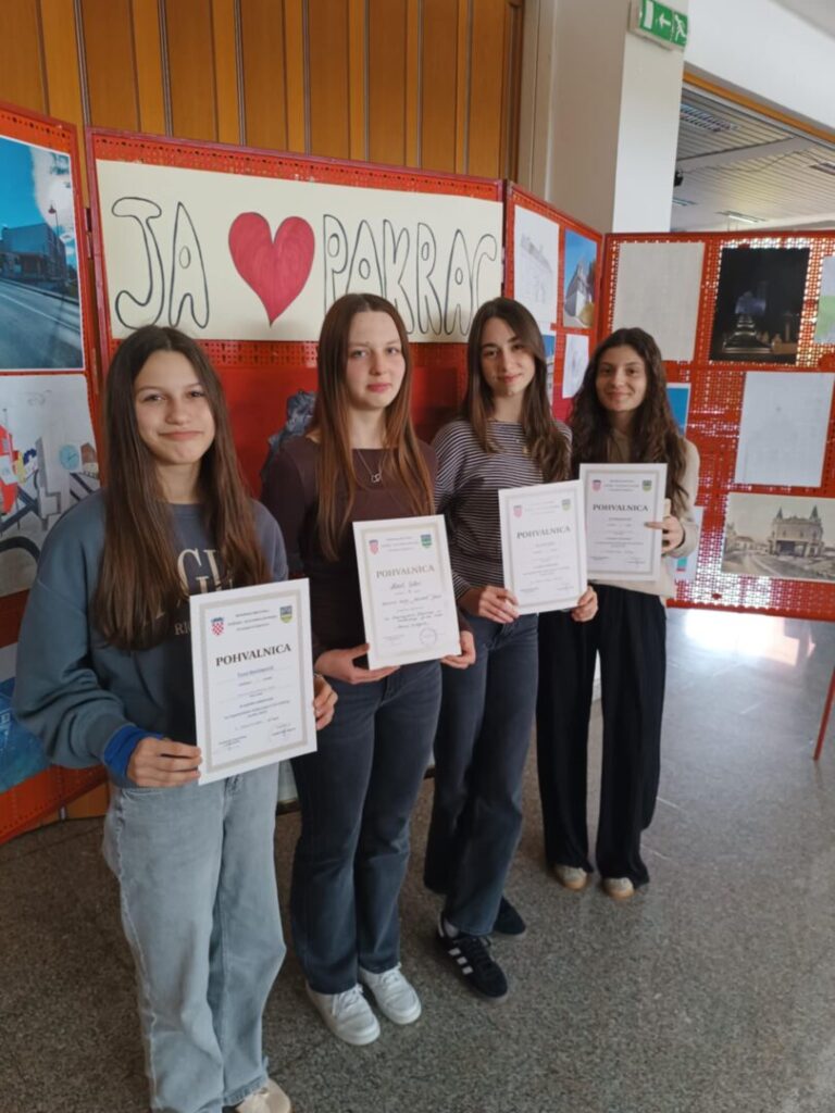 U Srednjoj školi Pakrac 23.3.2026. održano je županijsko Natjecanje iz hrvatskoga jezika. Našu su školu predstavljale u kategoriji sedmog razreda Tena Hećimović, a u kategoriji osmog razreda Eva Biondić, Nikol Ester i Iva Đurinović. Osvojena mjesta: Tena Hećimović 6. mjesto Iva Đurinović 6. mjesto Eva Biondić 8. mjesto Nikol Ester 16. mjesto Mentorice su im bile Marijana Benić i Ivana Novak Kamenčak.