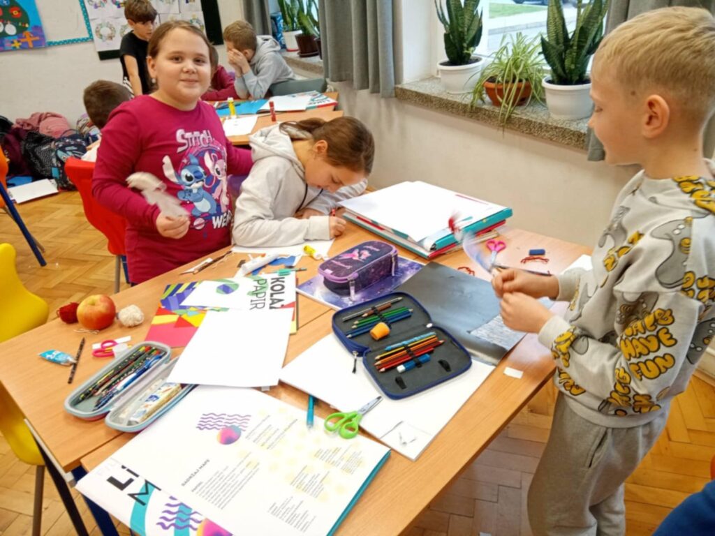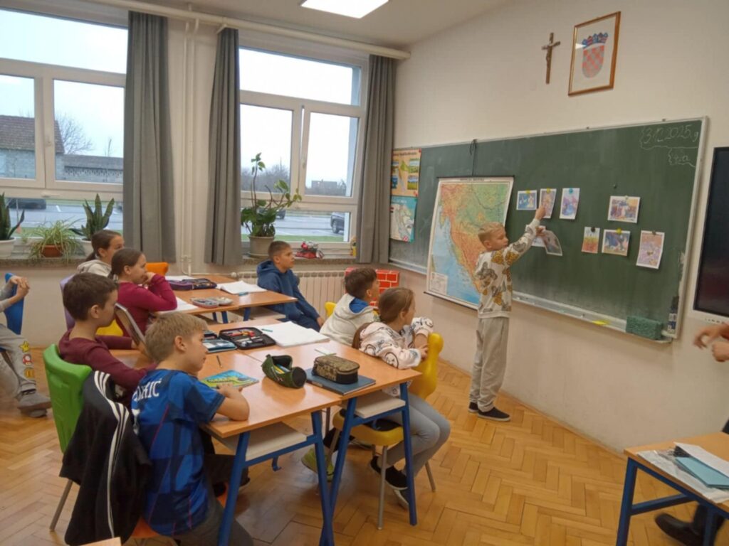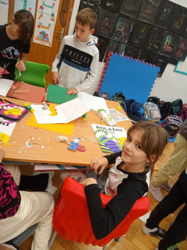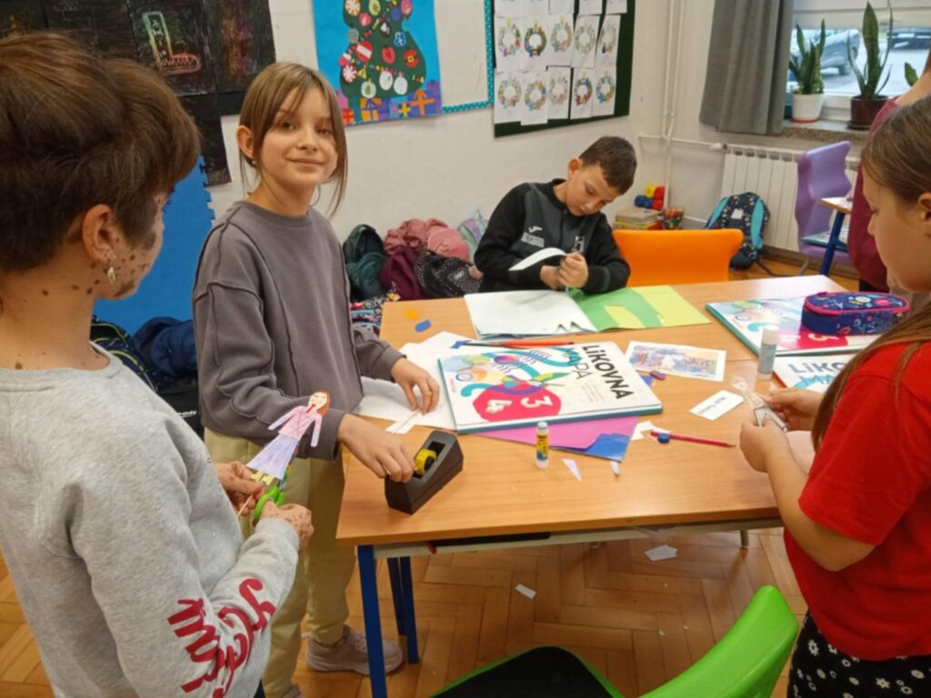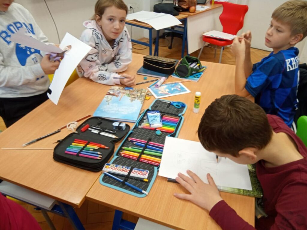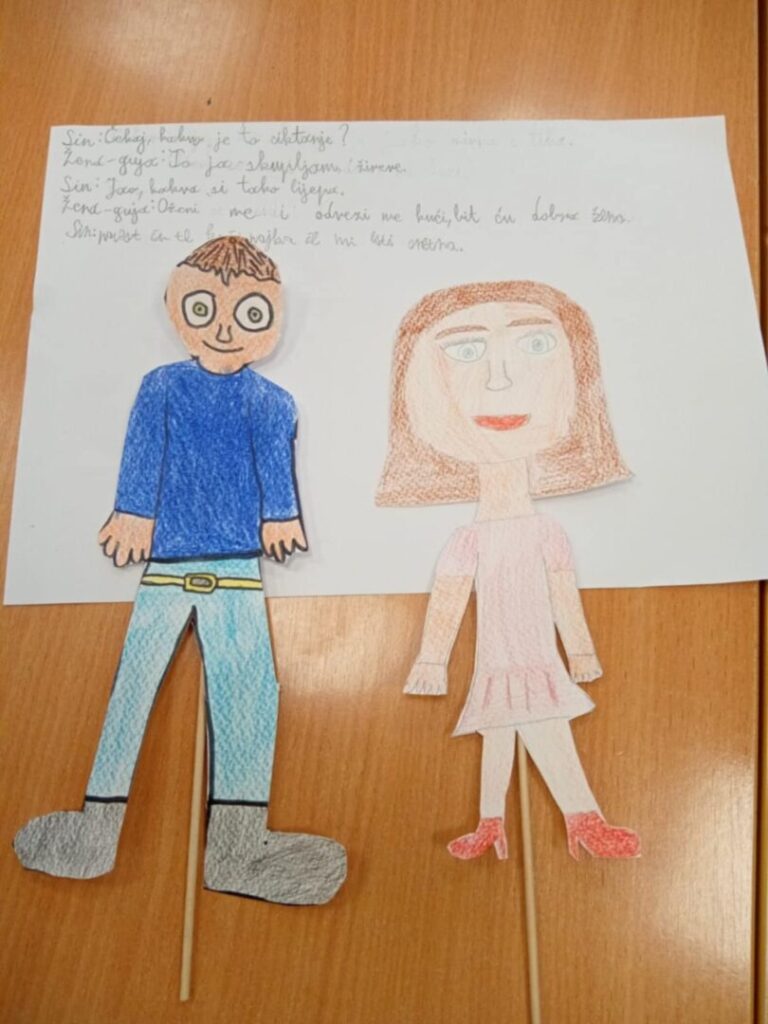 U srijedu 3. prosinca učenici 4.a obradili su lektiru “Šuma Striborova” u suradnji s knjižničarkom Melitom Horžicky-Radotić. Kroz nekoliko aktivnosti utvrdili su temu, osobine likova, spajali parove manje poznatih riječi i njihova značenja. Učenici su bili podijeljeni u pet skupina i svaka je skupina dobila zadatak uprizoriti jedan prizor iz bajke. Izradili su štapne lutke, napisali dijaloge i izveli ih na lutkarskoj pozornici. Pokazali su svoje znanje, maštu i kreativnost i dobro se zabavili.
